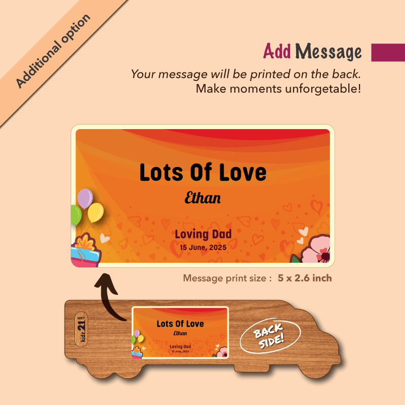 (1) Message: Make your little one's day even more special! Custom greetings printed on the back. Express love, create lasting memories for every special occasion. (available in "Additional Options")